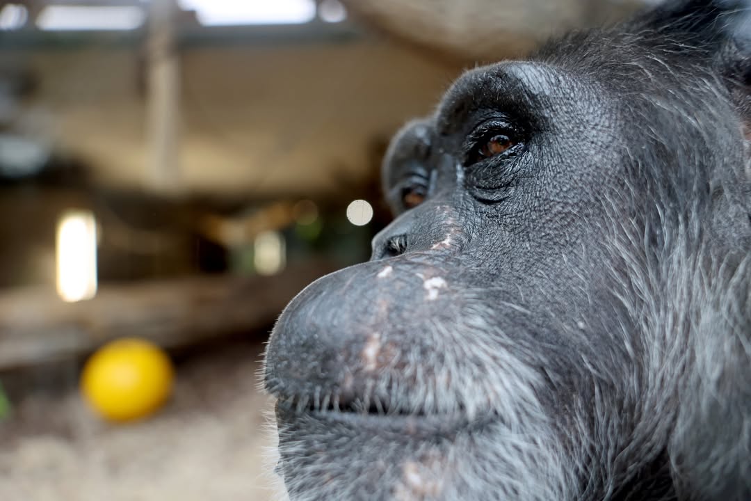 Schimpansenweibchen Sophie hat sich mittlerweile ganz gut von ihrer Zahn-OP heute Vormittag erholt. Sie ist jetzt auch wieder mit den anderen Schimpansen gemeinsam in der Anlage.