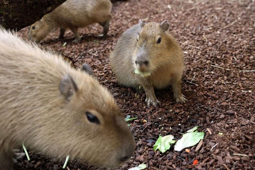 Die Zusammenführung von Capybara Sebastian mit den beiden neuen Weibchen hat sehr gut funktioniert. Nachdem beim ersten Konatkt das Männchen und die weiblichen Tiere noch nicht so entspannt waren, konnten mittlerweile die ersten Kopulationen beobachtet werden. Seitdem sind die drei Capybaras völlig ruhig und jetzt auch dauerhaft zusammen.
