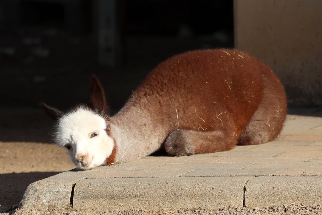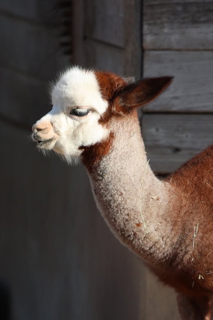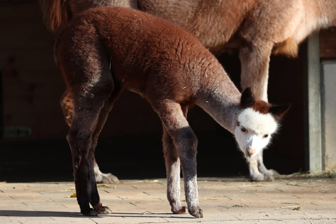 Alpaka-Fohlen Nele ist nun einen Monat alt und schon deutlich gewachsen. Die kleine Stute ist mit ihrer Herde in der Anlage im Streichelzoo gut zu beobachten.