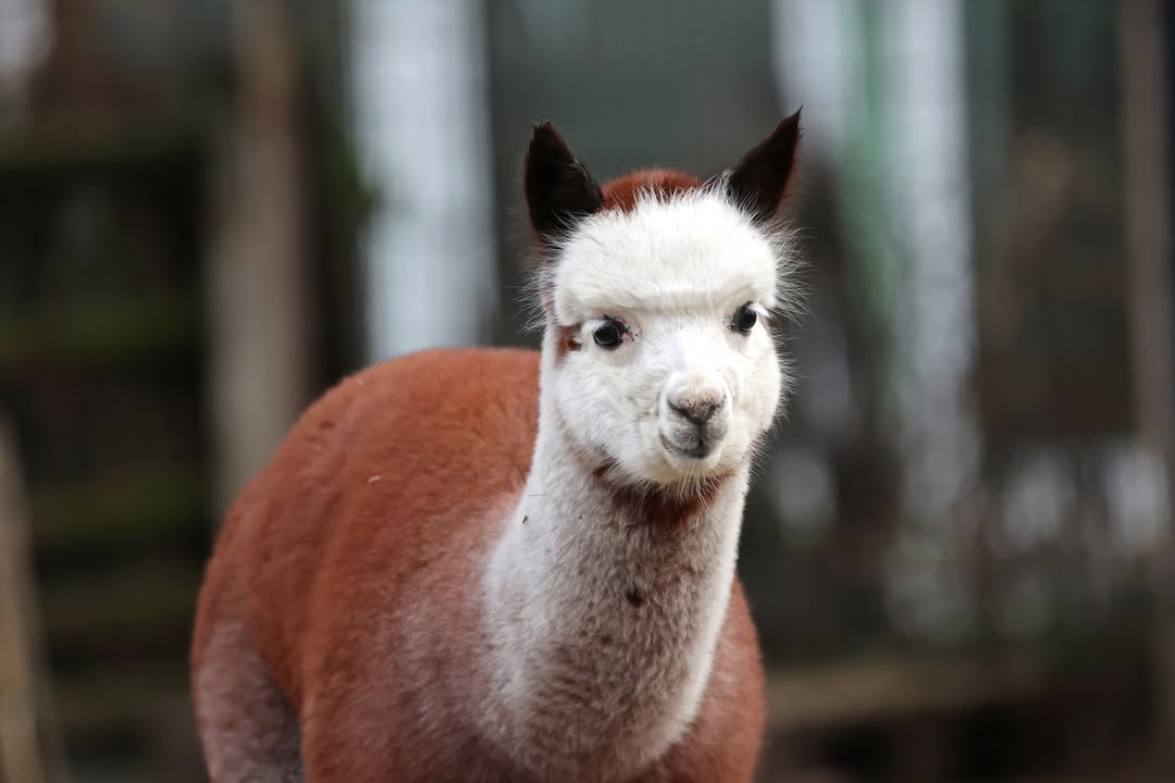 Alpakafohlen Nele beobachtet ihre Umgebung sehr intensiv. Die Alpakas sind im Streichelzoo zusammen mit den Nandus und den Großen Maras auf einer Anlage, sodass es immer Aktivität gibt, die Nele im Auge halten kann.
