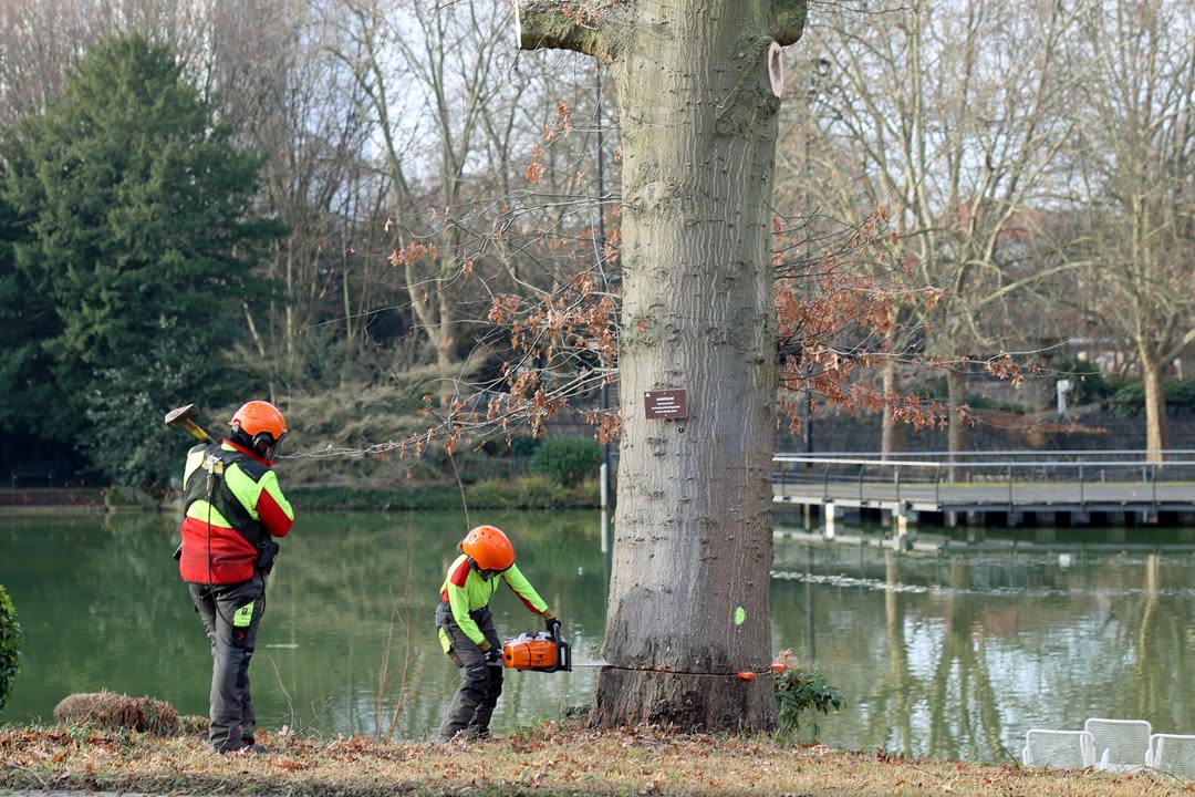 Am Ufer des Stadtgartensees musste eine alte Sumpfeiche gefällt werden, da sie nicht mehr standsicher war. Hallimasch-Pilzfruchtkörper waren bereits am Baum zu sehen, die Schädigung durch Fäulnis im Stamm schon sehr weit ausgebreitet und nach der Fällung deutlich erkennbar.