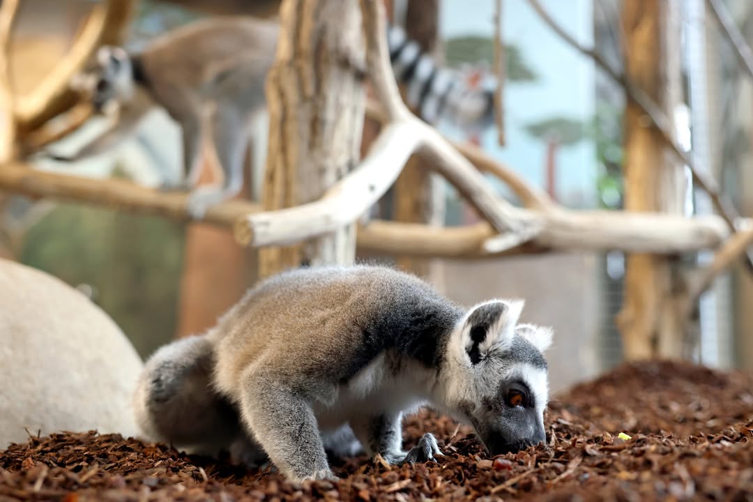 Die Kattas haben seit heute in ihrer Innenanlage einen Bodengrund aus Pinienrinde. Ganz vorsichtig haben die Lemuren ausgetestet, ob „das komische Zeug da unten“ auch wirklich okay ist. Mit einigen Rosinen konnten sie dann doch dazu verleitet werden, auch ganz auf diesem natürlichen Boden zu sitzen.