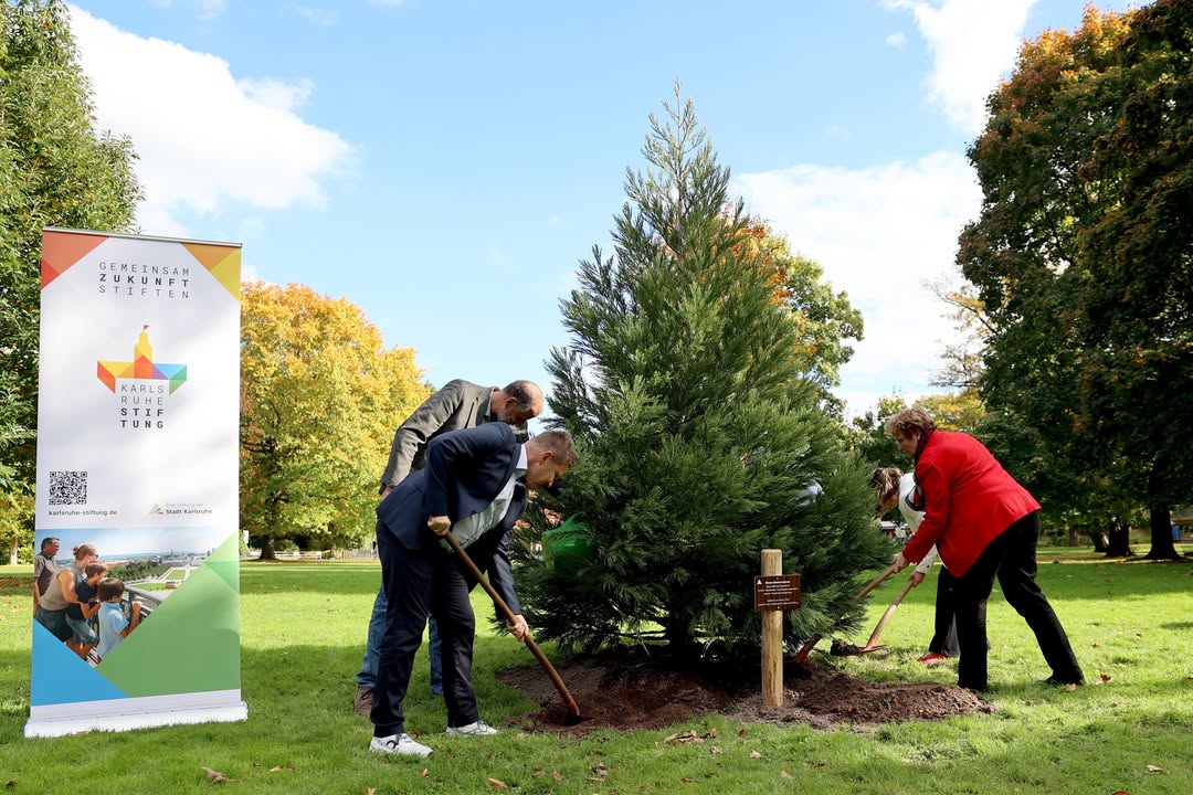Die neu gegründete Karlsruhe-Stiftung ist heute erstmals offiziell präsentiert worden. Erste Bürgermeisterin Gabriele Luczak-Schwarz, Vorstand und Geschäftsführerin Anna Weißhaar luden in den Zoologischen Stadtgarten ein, um die Arbeit und Ziele der Stiftung vorzustellen. Höhepunkt war die Pflanzung eines Mammutbaums, der mehr als 2.000 Jahre alt werden kann. Er soll ein Symbol für Wachstum, Nachhaltigkeit und Beständigkeit sein.