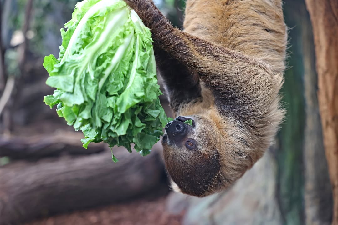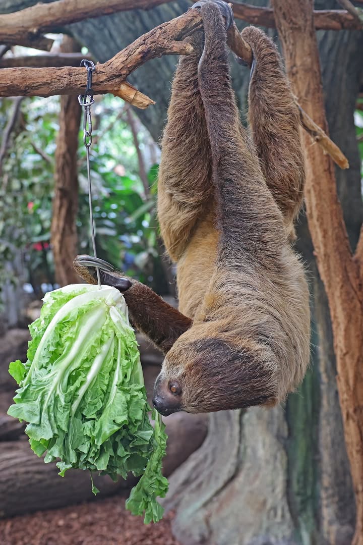 Gar nicht faul, sondern äußerst aktiv, zeigt sich unser neues Zweifinger-Faultier Sid im Exotenhaus, wenn es Salat gibt. Das Männchen kommt aus dem Zoo Pairi Daiza. Im Gegenzug ist unser Weibchen Mathilda in den belgischen Zoo umgezogen. In den kommenden Wochen soll zudem ein neues Weibchen bei uns einziehen.