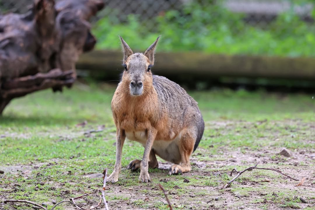 Große Maras werden auch Große Pampashasen genannt, denn sie erinnern in ihrem Körperbau an Hasen oder kleine Huftiere, gehören jedoch zur Familie der Meerschweinchen. Ursprünglich stammt die Art aus Argentinien. Dort sind Maras aktuell zwar noch weit verbreitet, aber ihre Bestände nehmen durch Lebensraumverlust und Nahrungskonkurrenz durch Haustiere und eingeführte Wildtiere deutlich ab. Die Art wird deshalb von der Weltnaturschutzunion auf der IUCN Red List of Threatened Species als potenziell gefährdet geführt. Unsere Maras leben mit den ebenfalls in Südamerika vorkommenden Alpakas und Nandus zusammen.