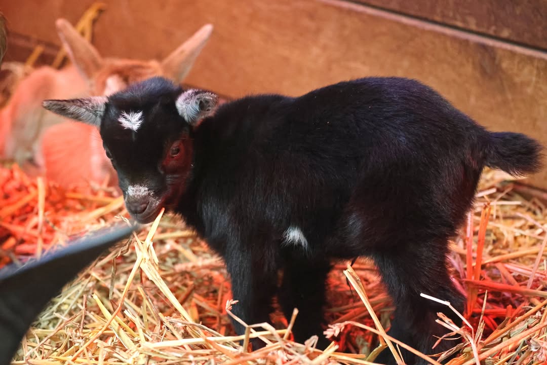 Im Streichelzoo gibt es mittlerweile 15 Jungtiere bei den Zwergziegen. Damit ist die Geburtenwelle für diese Saison bei den Ziegen abgeschlossen. Die Kleinen halten sich aktuell noch überwiegend im Stall auf, können aber auch mit der Herde raus.