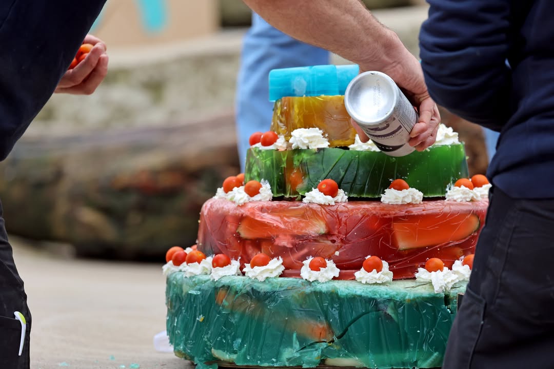 Mehrere hundert Zoogäste sind zum ersten Geburtstag von Eisbärjungtier MiKa gekommen. Das Tierpflege-Team hatte sich im Vorfeld einige Überraschungen ausgedacht und auf der Anlage verteilt. Für Mika gab es eine Torte, weitere Leckereien und Spielzeug. Happy Birthday!
