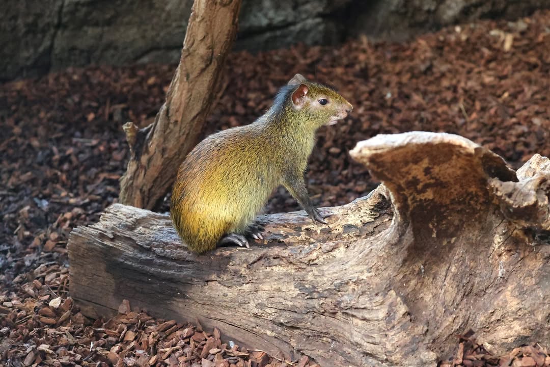 Neuzugang im Exotenhaus: ein Schwarzsteiß-Aguti aus dem Zoo Leipzig ist in der Gemeinschaftsvoliere mit Springtamarinen, Goldsittichen und Faultier eingezogen. Ihr Vorkommen in der Natur beschränkt auf Nordost-Brasilien südlich des Amazonas und östlich des Rio Tocantins. Die Tiere sind wie andere Arten der Gattung Pflanzenfresser und ernähren sich vor allem von Früchten, Samen und Nüssen. Eine besondere Bedeutung haben die Tiere als Samenverteiler und damit als Unterstützer zur Verbreitung von Regenwaldbäumen. Ein weiteres Tier soll in Kürze ebenfalls nach Karlsruhe umziehen. Azara-Agutis sind dagegen nicht mehr im Exotenhaus, sondern im Affenhaus zu sehen.