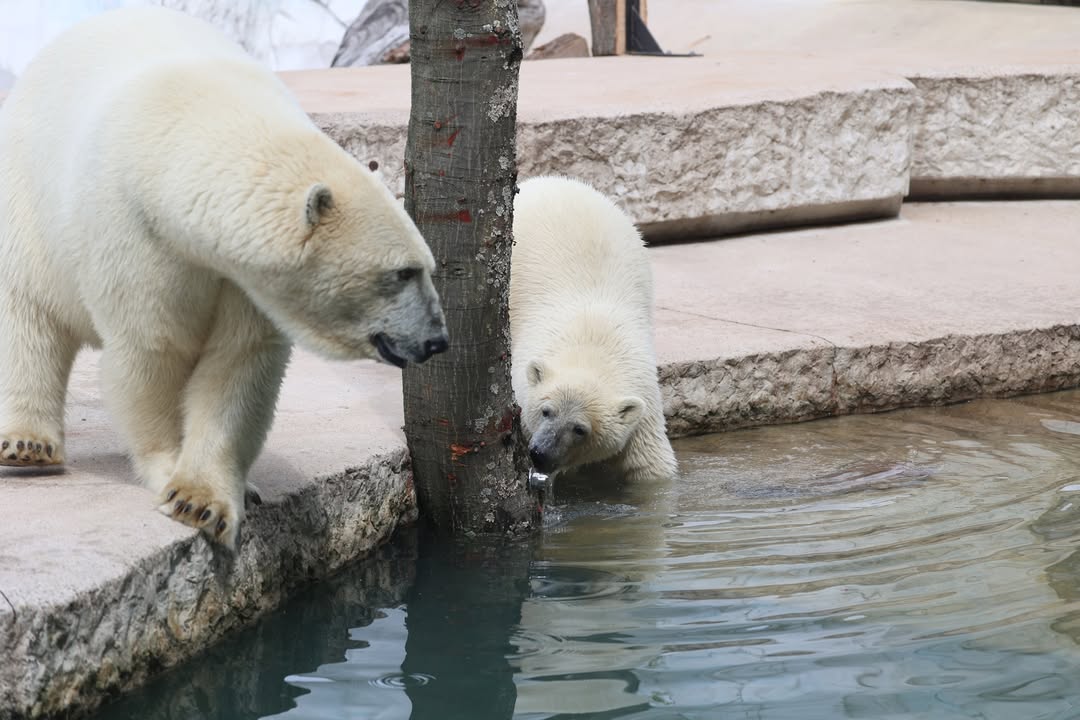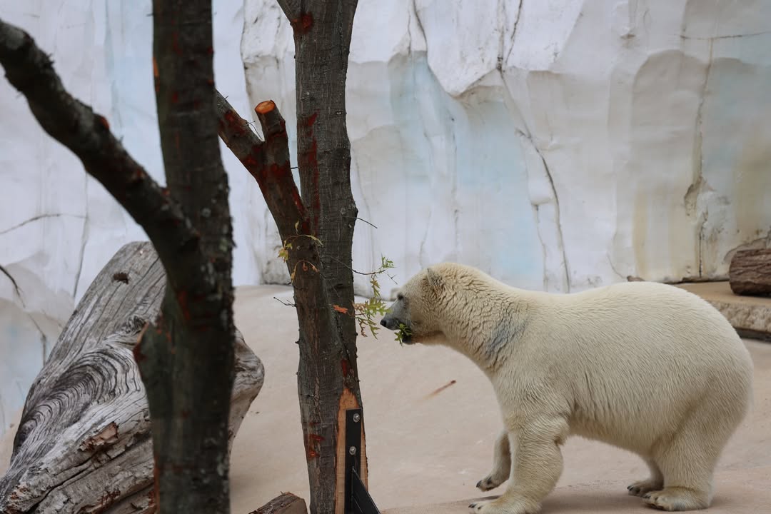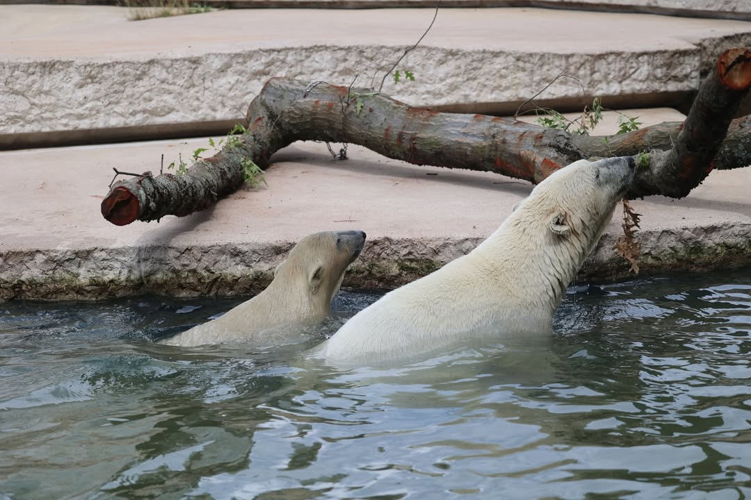 Nuka und MiKa zeigen sich begeistert von den zahlreichen neuen Stämmen in der Anlage. Besonders Nuka hat bereits überall ausgetestet, ob die Stämme auch wirklich fest montiert worden sind. Mit einem großen Kran war vorgestern die neue „Anlageneinrichtung“ eingebracht worden.