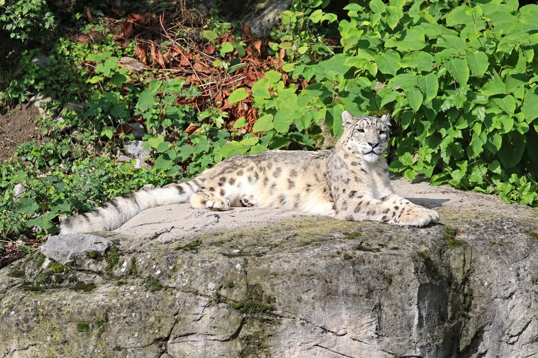 Schneeleoparden bewohnen ursprünglich felsige und zerklüftete Bergregionen in bis zu 6000 Metern Höhe. Trotz Einrichtung von Schutzgebieten ist die in Zentralasien heimische Art laut Weltnaturschutzunion in der IUCN Red List of Threatened Species als „gefährdet“ geführt. Bedroht sind Schneeleoparden hauptsächlich durch Wilderei, Rückgang der Beutetiere sowie eine immer weiter fortschreitende Fragmentierung der einzelnen Populationen. Im Zoo Karlsruhe können die Tiere in einer naturnahen Anlage am Lauterberg beobachtet werden.