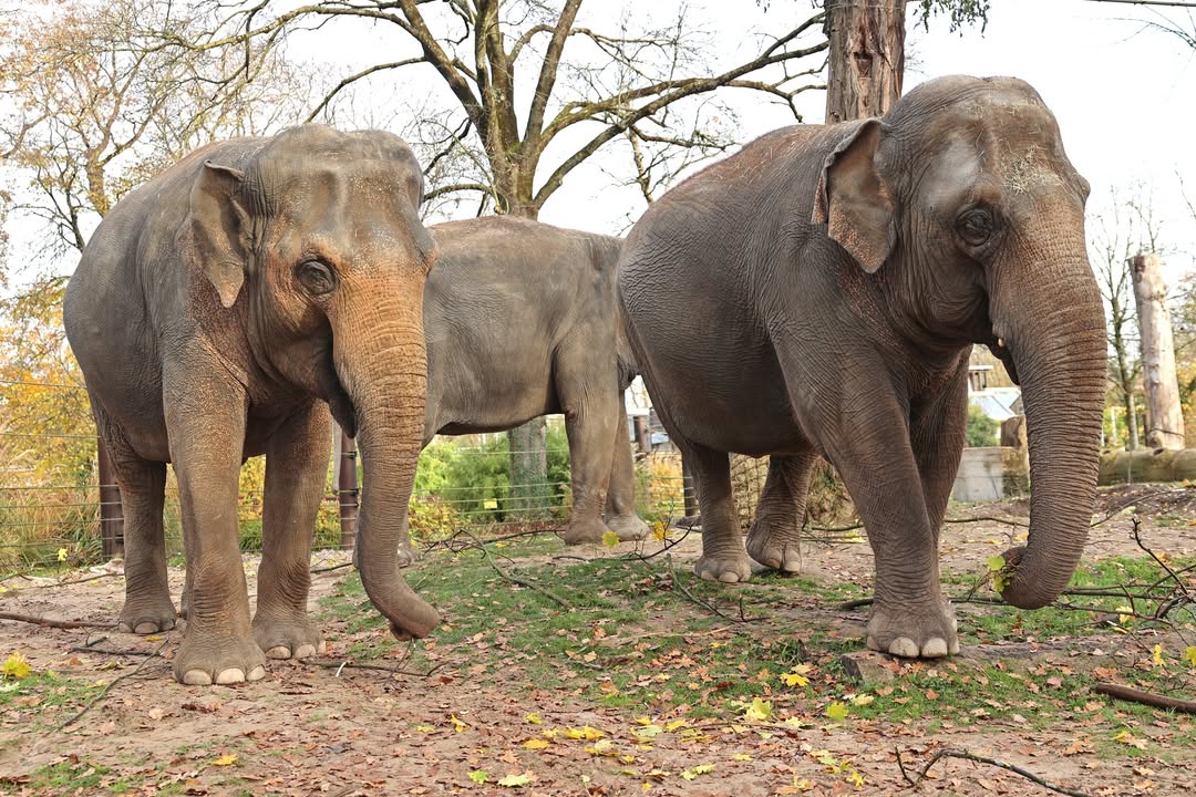 Unsere drei Elefantenkühe Saida, ihre Tochter Indra und Jenny leben seit eineinhalb Jahren zusammen auf der Anlage. Eine Besonderheit dort sind die unterschiedlichen Bodenuntergründe. Für Elefanten ist es wichtig, neben hartem auch weichen Untergrund zur Verfügung zu haben. Im Innenbereich gibt es ebenfalls viel Sand, der teilweise angehäuft wird. So können die älteren Tiere besser wieder aufstehen, wenn sie sich zum Schlafen ablegen.