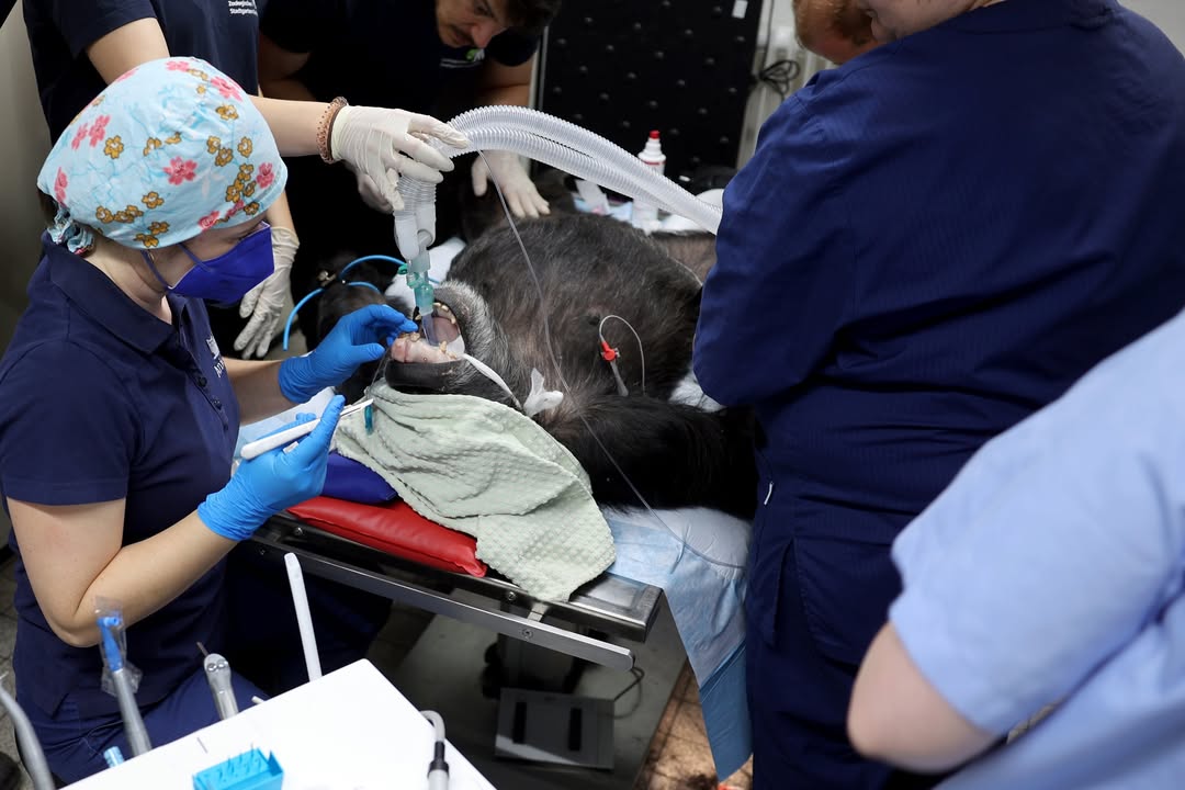 Wenn der Zahnarzt beim Schimpansen ran muss: Unsere Sophie hatte größere Zahnprobleme. Für die entsprechende Behandlung musste das 49 Jahre alte Schimpansenweibchen heute Vormittag in Narkose gelegt werden.