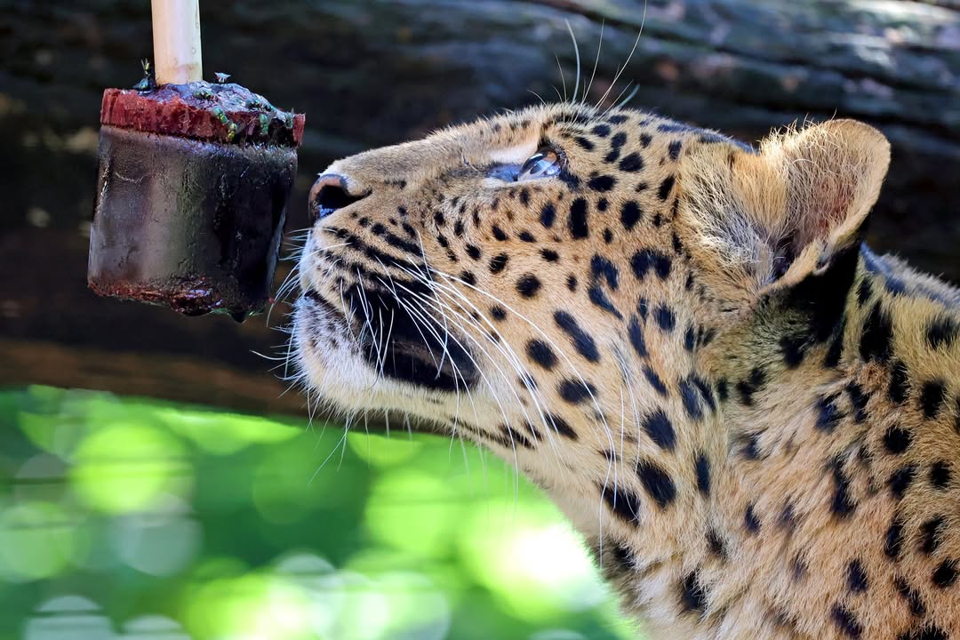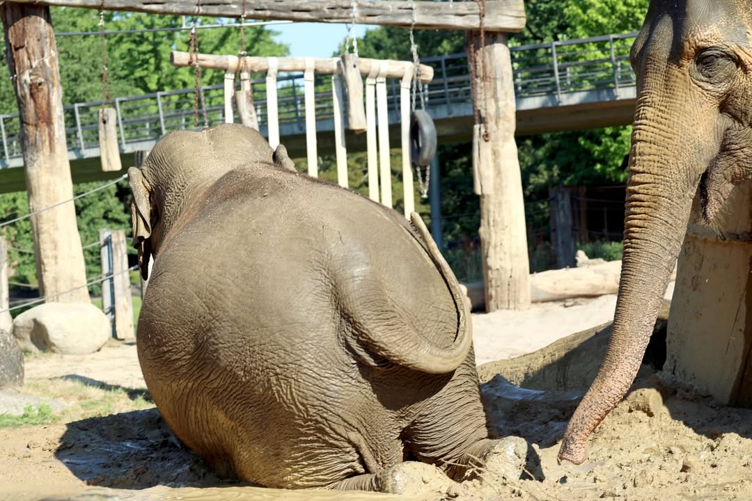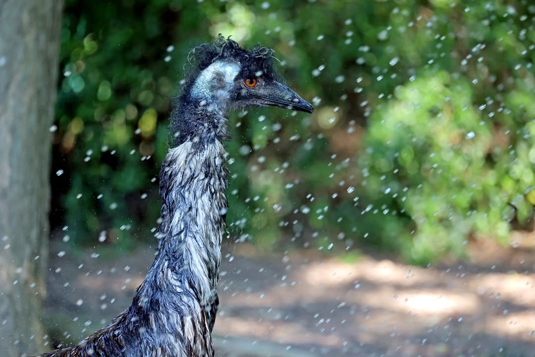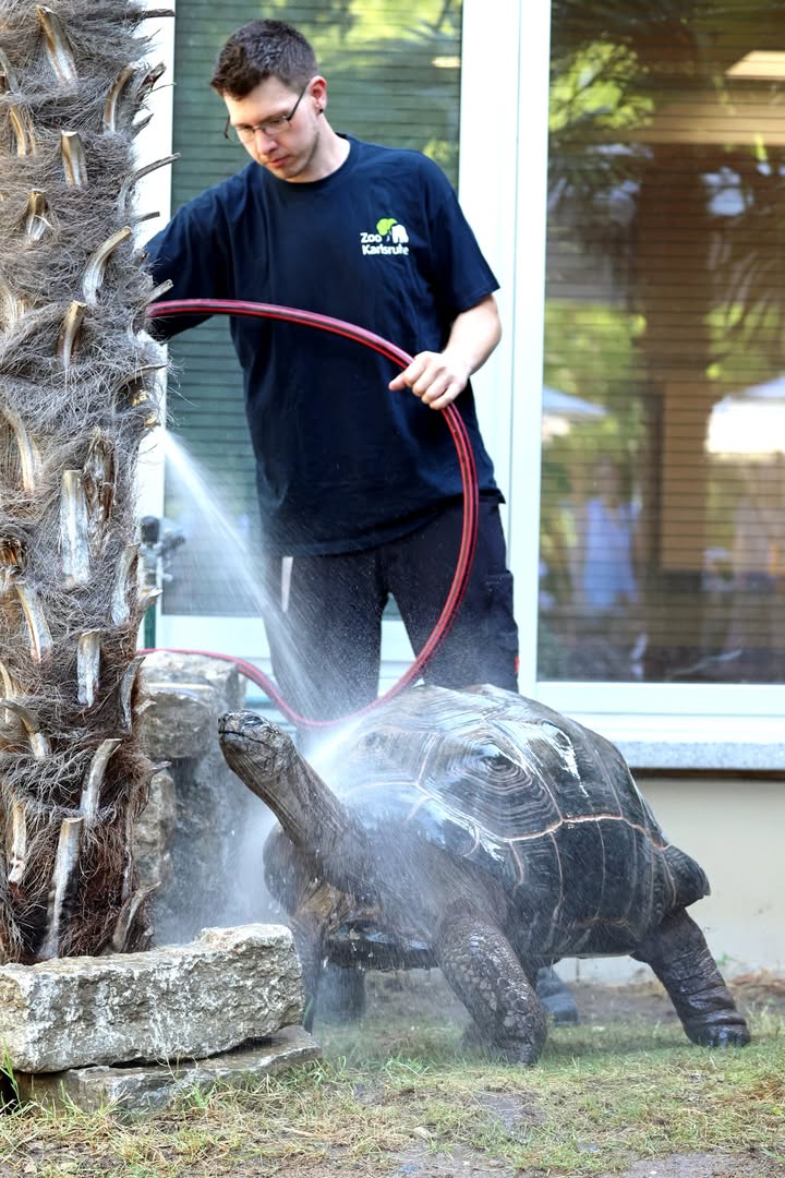 Wie gehen die Tiere im Zoo mit der aktuellen Hitze um? Für die meisten Individuen ist das überhaupt kein Problem. Sie können sich entscheiden, ob sie sich in ihren Außenanlagen oder lieber drinnen aufhalten. Zudem haben sie die Möglichkeit, Schatten oder Wasserteile aufzusuchen. Unser Tierpflegeteam überleght sich außerdem immer wieder zusätzliche Möglichkeiten, die Tiere abzukühlen und gleichzeitig zu beschäftigen. Das kann das Abduschen mit dem Wasserschlauch sein, es werden Schlammsuhlen angelegt oder Futter in Wasser eingefroren. Für die Raubkatzen gibt es zum Beispiel Blut-Eis.