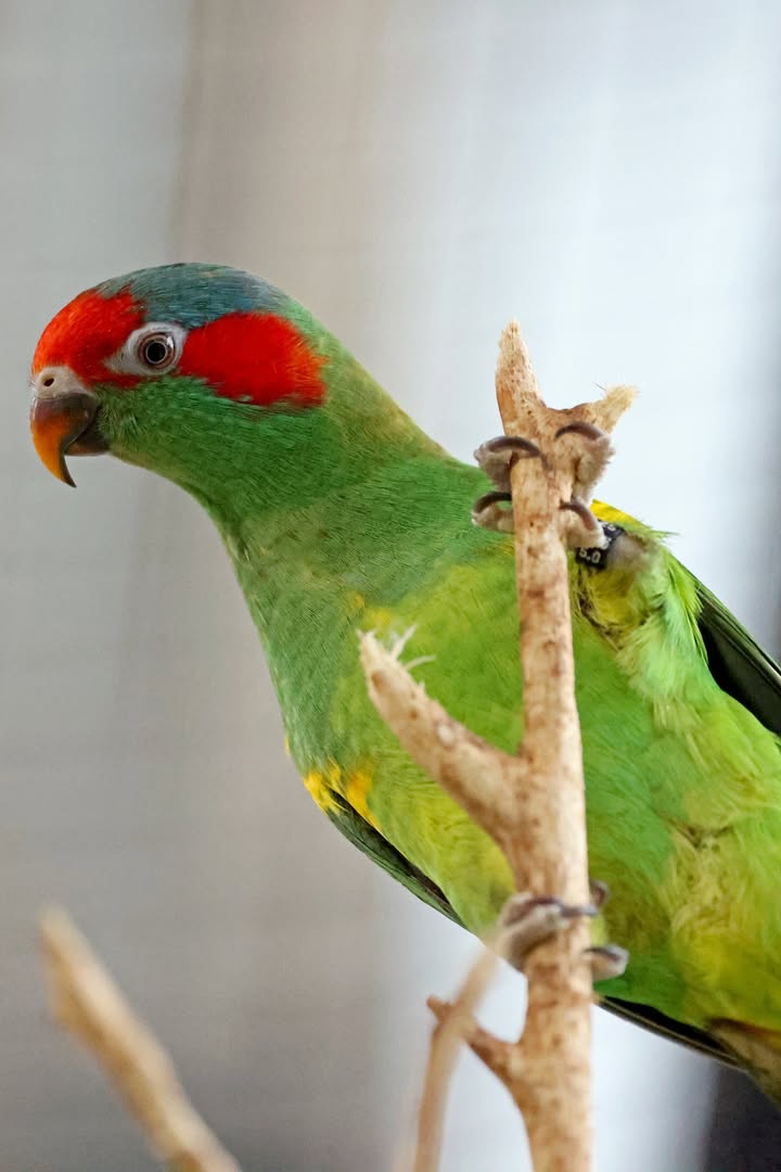 Zudem leben jetzt Moschusloris (Glossopsitta concinna) in der Voliere gegenüber, in der weitere Lori-Arten gepflegt werden. Zu den zwei Männchen sollen noch Weibchen kommen, dass mit diesen Papageien ebenfalls eine Zucht möglich ist. Diese Art wird neben Karlsruhe nur in zwei weiteren europäischen Tiergärten gehalten. Mit den Moschusloris ist die Zahl der Papageienarten im Zoo Karlsruhe auf 30 angestiegen.